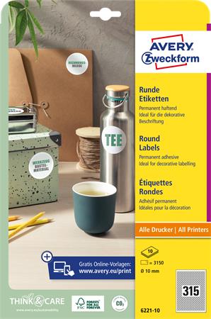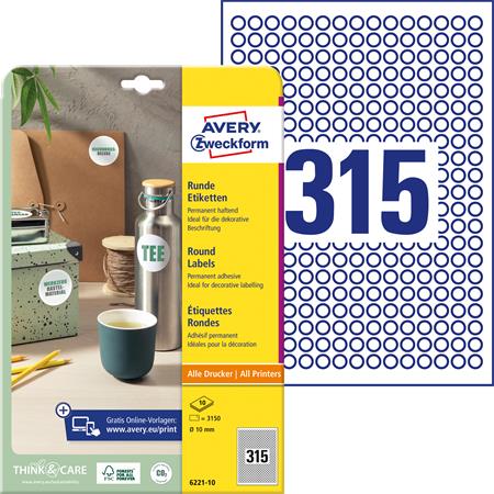 KezdőlapIrodaszerekIrodai papíráruEtikettekEtikett, univerzális, 10 mm, kör, AVERY ZWECKFORM, 3150 etikett/csomag