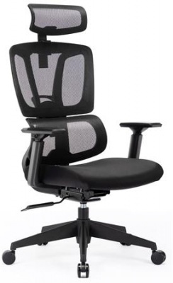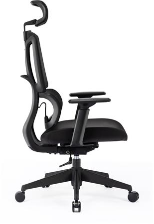 Irodai forgószék, fekete hálós háttámla, fekete szövet ülőlap, fekete műanyag váz és lábkereszt, "Famora"