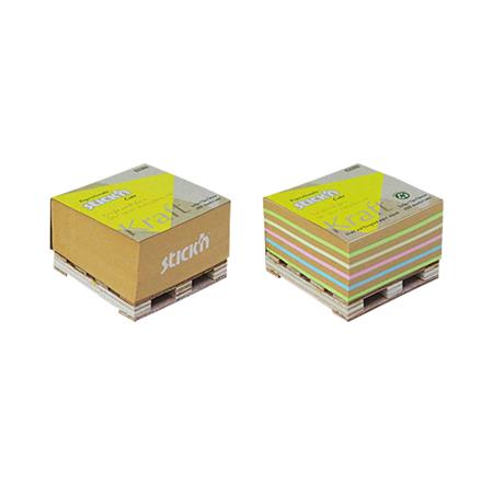 Öntapadó jegyzettömb, 76x76 mm, 400 lap, mini raklap, STICK N "Kraft Cube", vegyes színek