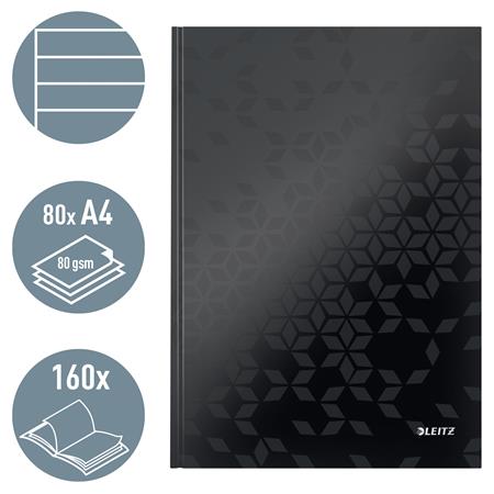 Beíró, A4, vonalas, 80 lap, keményfedeles, LEITZ "Wow", fekete