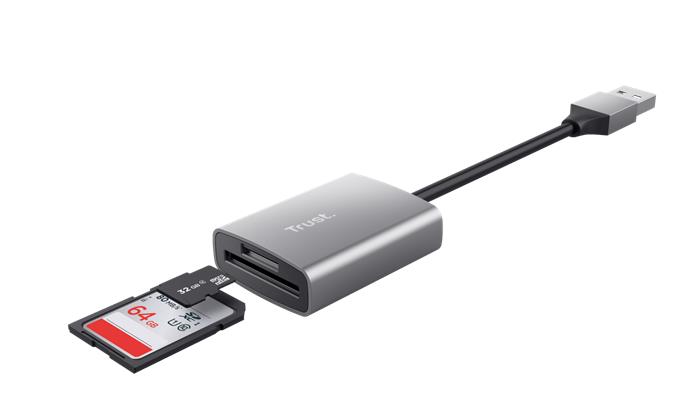 Kártyaolvasó, SD + MicroSD kártyához, USB 3.2 gen1, "TRUST Dalyx", ezüst