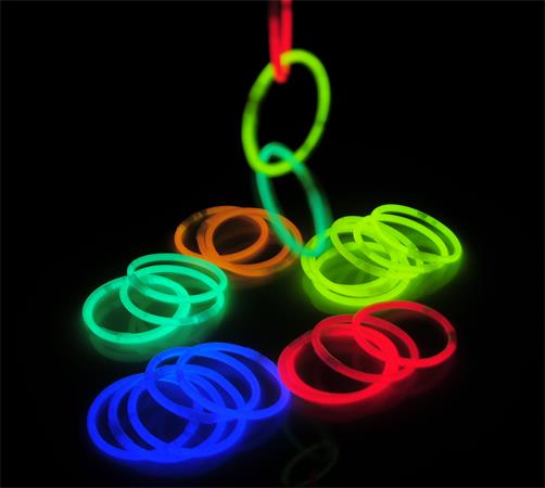 -készlet tartalma: 15 db világító karkötő a szükséges adapterekkel, papírcsőben