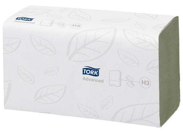 Kéztörlő, Z hajtás, 2 rétegű, 250 lap, H3 rendszer, Advanced, TORK "Singlefold", zöld