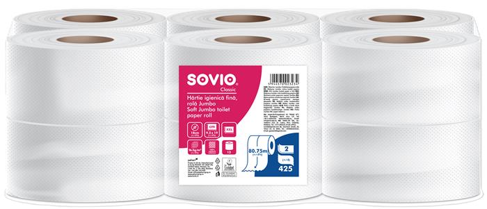 A Sovio toalettpapírt a nagy kiszerelésnek köszönhetően közepes és nagy forgalmú helyiségekbe egyaránt ajánljuk, így HoReCa, gyárak, bevásárlóközpontok, irodák, szépségszalonok/kozmetikák, orvosi rendelők és klinikák, közlekedési létesítmények, közintézmények számára. A hagyományos tekercseknél jóval több papír van egy tekercsen, így ritkábban kell a tekercset cserélni.