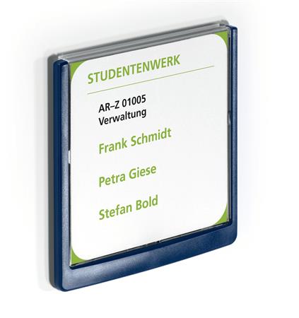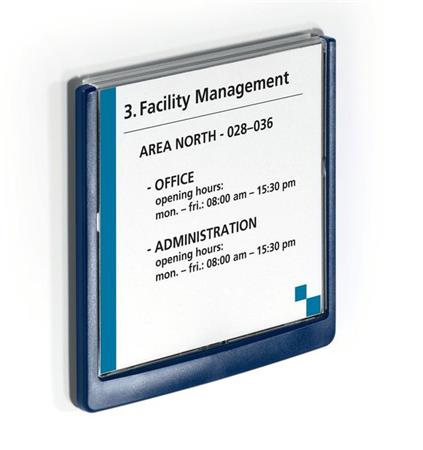 A CLICK SIGN segítségével profin és kényelmesen helyezhetjük ki dokumentumainkat sima, kemény felületre.-felhasználási terület: helyiségek megjelölésére, eligazító információk kihelyezésére-rögzítés: csavaros-anyag: műanyag-kapactiás: 1 papír (80 g/m2)-tájolás: fekvő-külső méretek: 172 x 172 mm (szé x ma)-betétlap mérete: 149 x 148,5 mm (szé x ma)